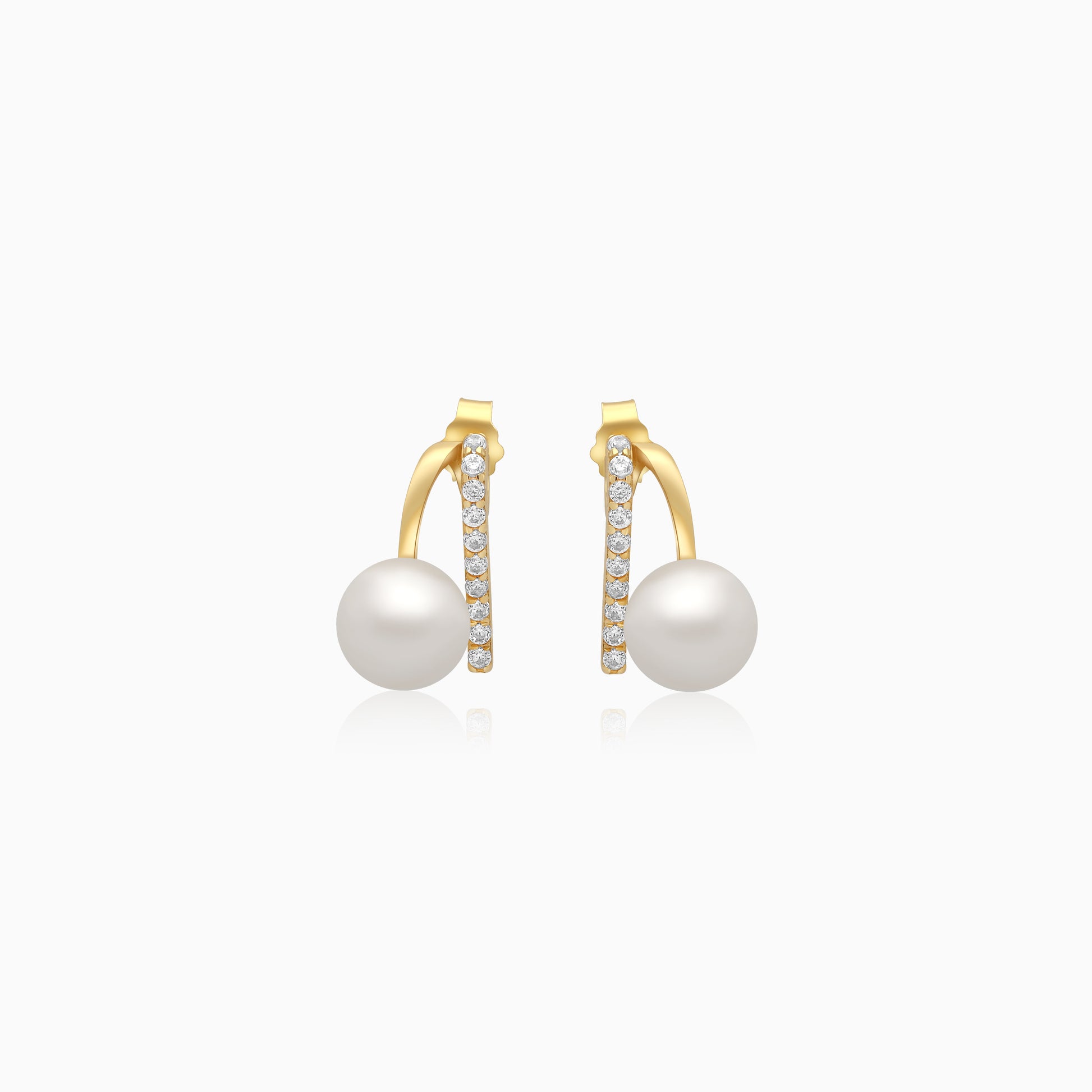 Danah Yellow Gold Earrings 18 Karat With Pearls And Zircon Stones